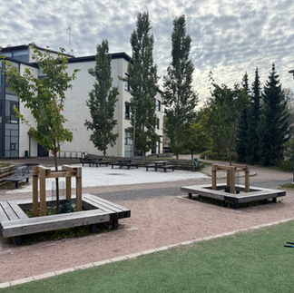 Lagstadin koululle Espooseen toimitimme neliönmuotoisia AITTA-penkkejä, jotka kiertävät nuoria puita ja suojaavat niitä koulun pihalla. Tämä toteutus on hyvä esimerkki siitä, miten ulkokaluste voi tarjota enemmän kuin mukavan istumapaikan – se voi samalla tukea vihreyttä ja vahvistaa yhteyttä luontoon.
